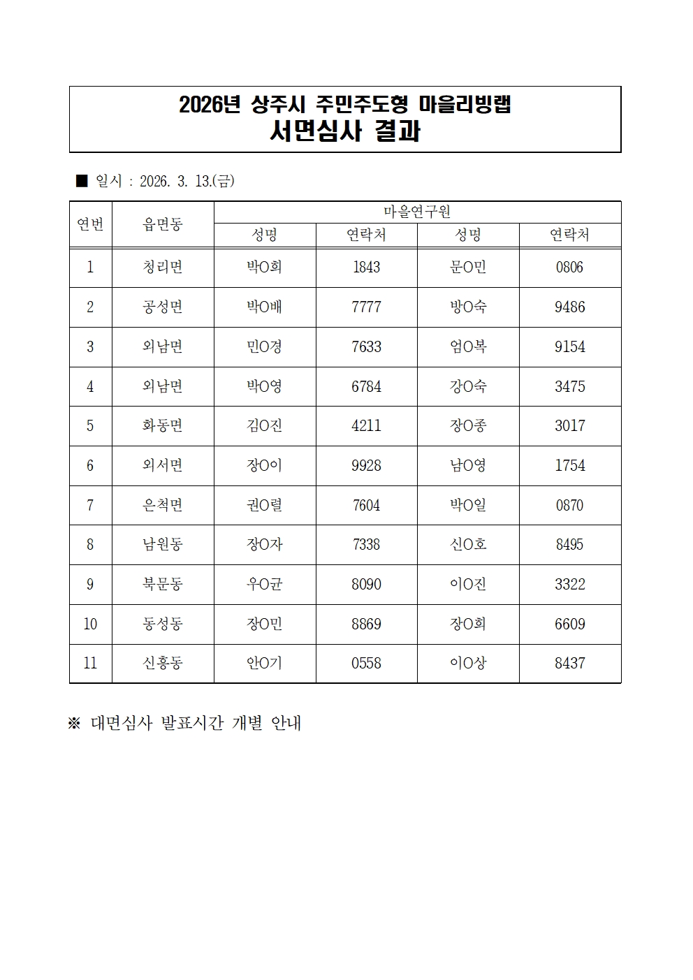 [가람과사람] 2026년 상주시 주민주도형 마을리빙랩 서면심사 결과 공고
