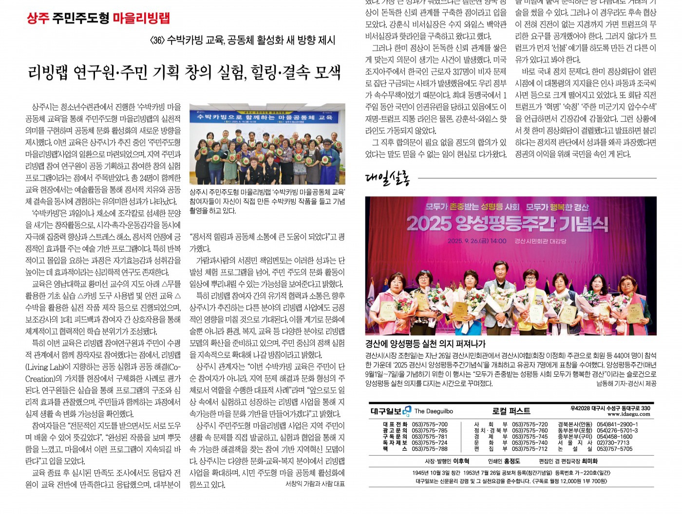 이번 교육은 상주시가 추진 중인‘주민주도형 마을리빙랩’사업의 일환으로 마련되었으며, 지역 주민과 리빙랩 참여 연구원이 공동 기획하고 참여한 창의 실험 프로그램이라는 점에서 주목받았다. 총 24명이 함께한 교육 현장에서는 예술활동을 통해 정서적 치유와 공동체 결속을 동시에 경험하는 유의미한 성과가 나타났다.