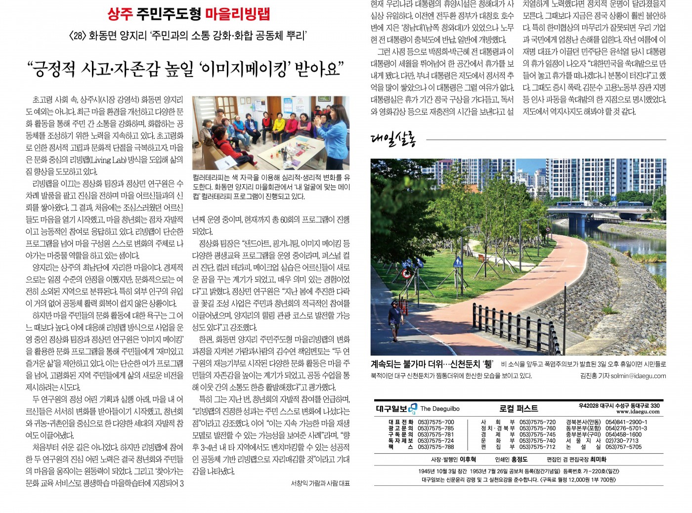 [상주시 주민주도형 마을리빙랩 성공사례] 화동면 양지리 ’주민과의 소통 강화, 화합 공동체 뿌리’ 그 답은 중용 실천
