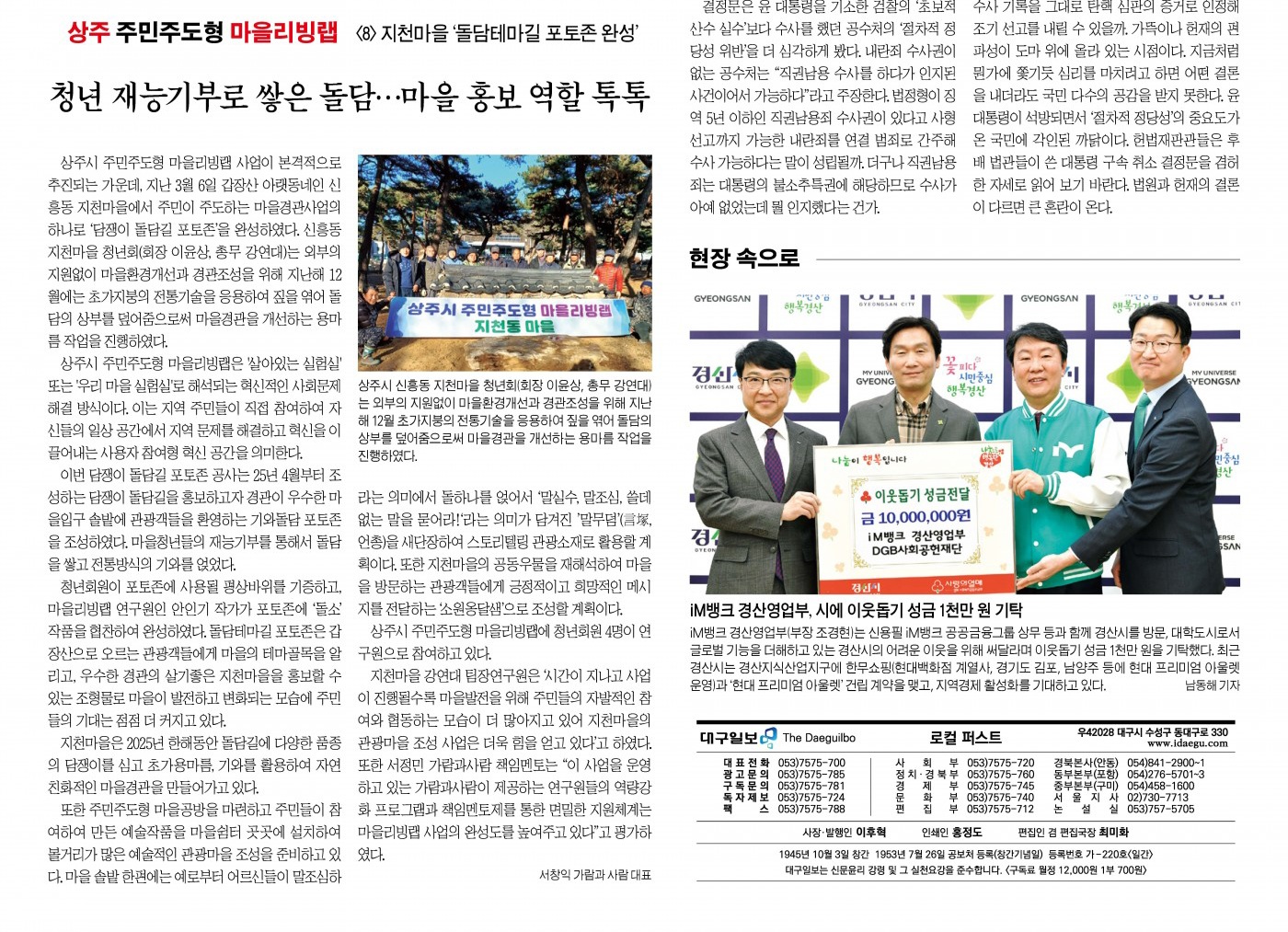 [상주시 주민주도형 마을리빙랩 성공사례] 지천마을 '돌담테마길 포토존 완성'