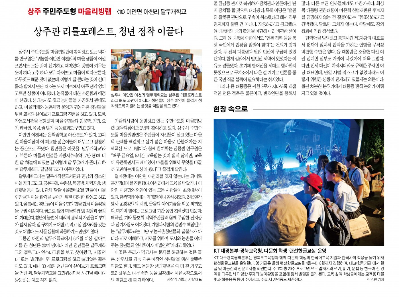 [상주시 주민주도형 마을리빙랩 성공사례] 들썩들썩 청년들 시골살이 이안면 달두개학교