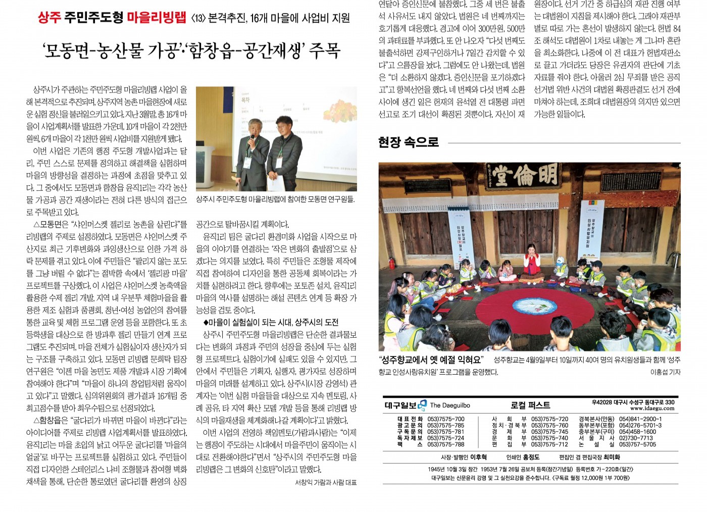 이번 사업은 기존의 행정 주도형 개발사업과는 달리, 주민 스스로 문제를 정의하고 해결책을 실험하며 마을의 방향성을 결정하는 과정에 초점을 맞추고 있다. 그 중에서도 모동면과 함창읍 윤직1리는 각각 농산물 가공과 공간 재생이라는 전혀 다른 방식의 접근으로 주목받고 있다.