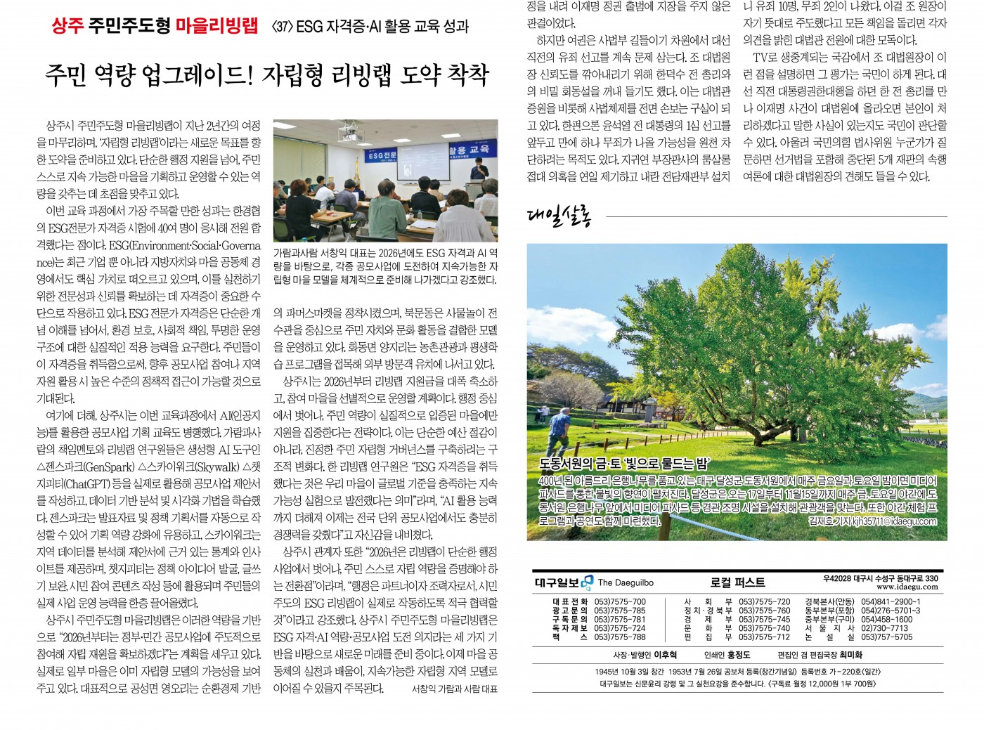[상주시 주민주도형 마을리빙랩 성공사례] ESG 자격·AI 역량으로 자립형 모델 도전