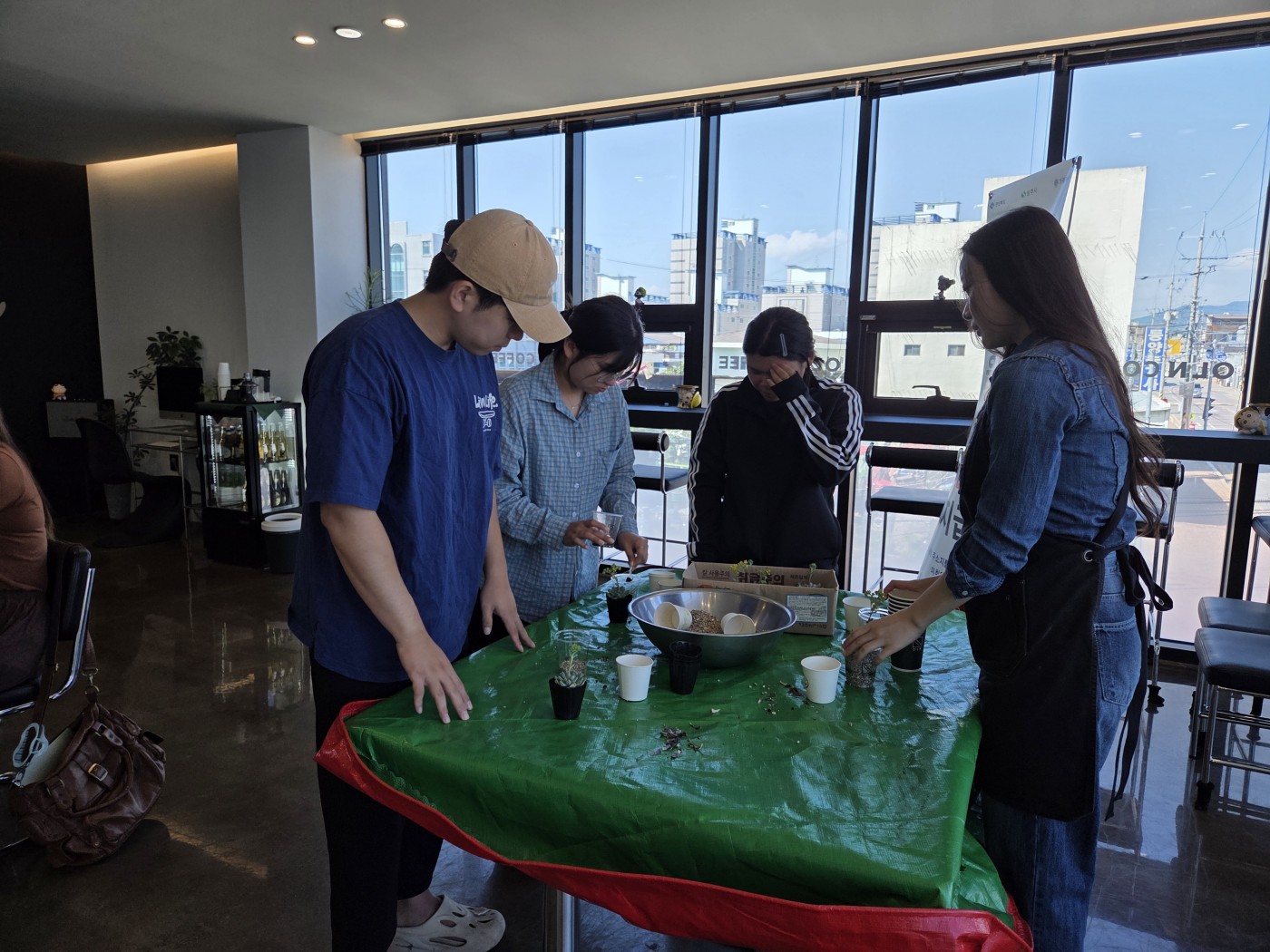 2025년 9월 11일 꿈이음 청춘카페 지원사업 의무교육(오르내) 관리자 0 51 09.12 15:11 꿈이음 청춘카페 지원사업 의무교육1. 교육명: 음료 제조 및 커피박 업사이클을 통한 화분 제작 체험(2회차)2. 일시: 2025.9.11.(목) 10~12시3. 장소: 오르내(중앙로 290, 2층)